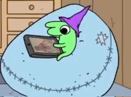 Glep is a green critter from the Adult Swim show Smiling Friends. Born in 329 AD, He works for a charity called Smiling Friends, and he usually sits on his bean bag chair and doing something to pass time. He Usually Has a wizards hat on, and he lives in Pennsylvania.