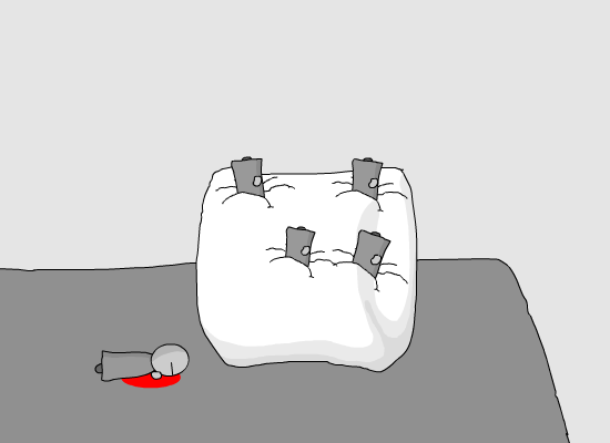 In the beginning, a civilian is walking by when he notices a man standing next to a cannon. He reads a sign next to the cannon which reads, 'Marshmellow-Madness Ride - 5¢'. The ride owner smiles, and is given a nickel from the civilian. The ride owner then puts him inside the cannon. As soon as the civilian is ready, he is fired out. The civilian then lands face-first into a giant marshmallow. Two more characters are launched afterwards, pushing the marshmallow towards a cliff. One of the characters misses the marshmallow and painfully hits the ground, killing him. Another person gets launched in, causing the marshmallow to teeter on the edge of the cliff.