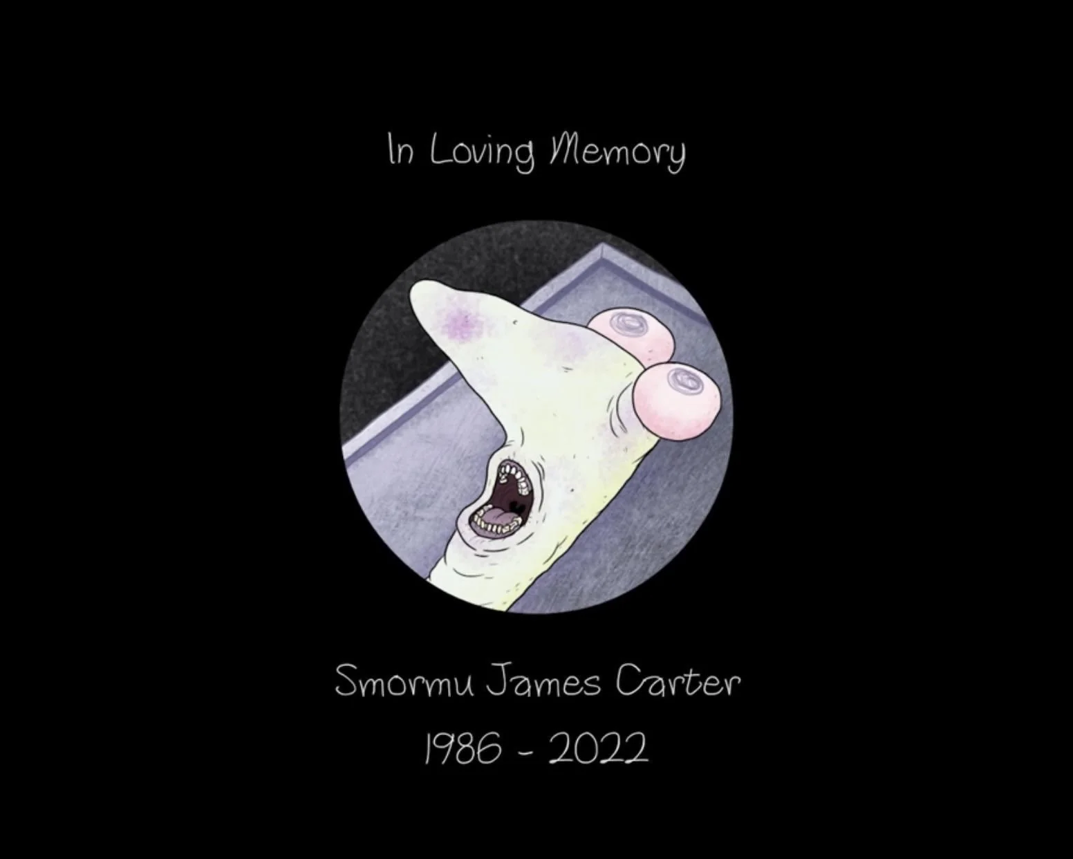 Smormu would die in 2022, living to the the age of 36. Some speculate that Charlie did this, as on the "In loving memory" screen at the end of the credits, we can see that Smormu has purple spots on him, which look like Bruises given to him by someone's punches. After this he was not seen again.